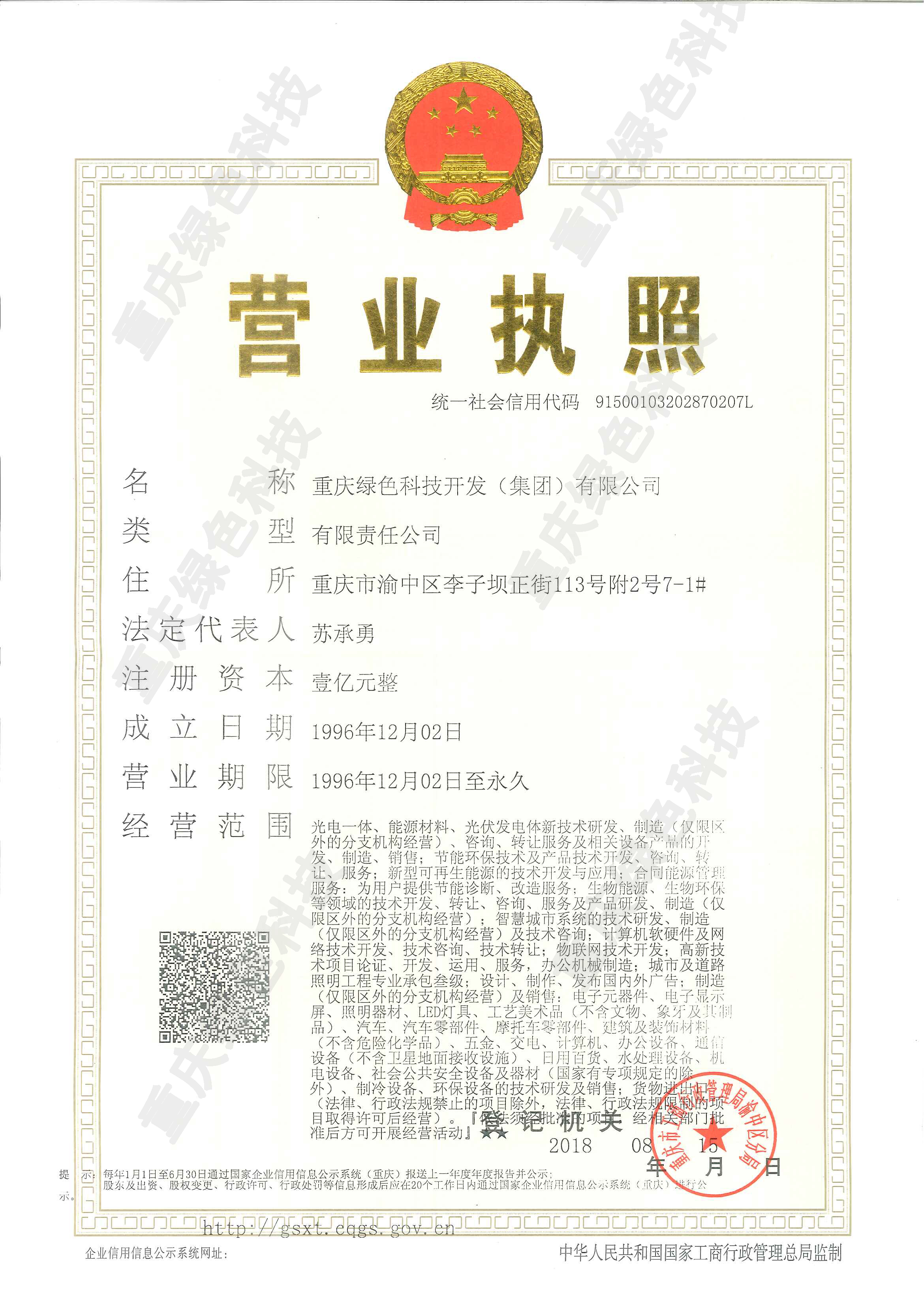 重慶綠色科技開(kāi)發(fā)(集團(tuán))有限公司是國(guó)家高新技術(shù)企業(yè)、重慶市LED智能控制技術(shù)工程研究中心、重慶市中小企業(yè)技術(shù)研發(fā)中心、重慶市高成長(zhǎng)性科技企業(yè)。擁有一支專(zhuān)業(yè)的多色溫LED智慧照明科研團(tuán)隊(duì),獲得國(guó)家發(fā)明等各類(lèi)自主知識(shí)產(chǎn)權(quán)專(zhuān)利100余項(xiàng)。公司是以物聯(lián)網(wǎng)全光譜多色溫LED智慧路燈及“智慧城市”城市照明夜景燈飾聯(lián)動(dòng)三級(jí)管理共享平臺(tái)為主要研發(fā)方向的現(xiàn)代科技型企業(yè),經(jīng)營(yíng)銷(xiāo)售物聯(lián)網(wǎng)全光譜多色溫LED智慧路燈系列照明產(chǎn)品和教室照明護(hù)眼燈,推廣合同能源管理(EMC)照明節(jié)能改造項(xiàng)目、節(jié)能減排技術(shù)以及節(jié)能項(xiàng)目設(shè)計(jì)、融資、改造,咨詢(xún)服務(wù)、銷(xiāo)售、工程實(shí)施和技術(shù)推廣。